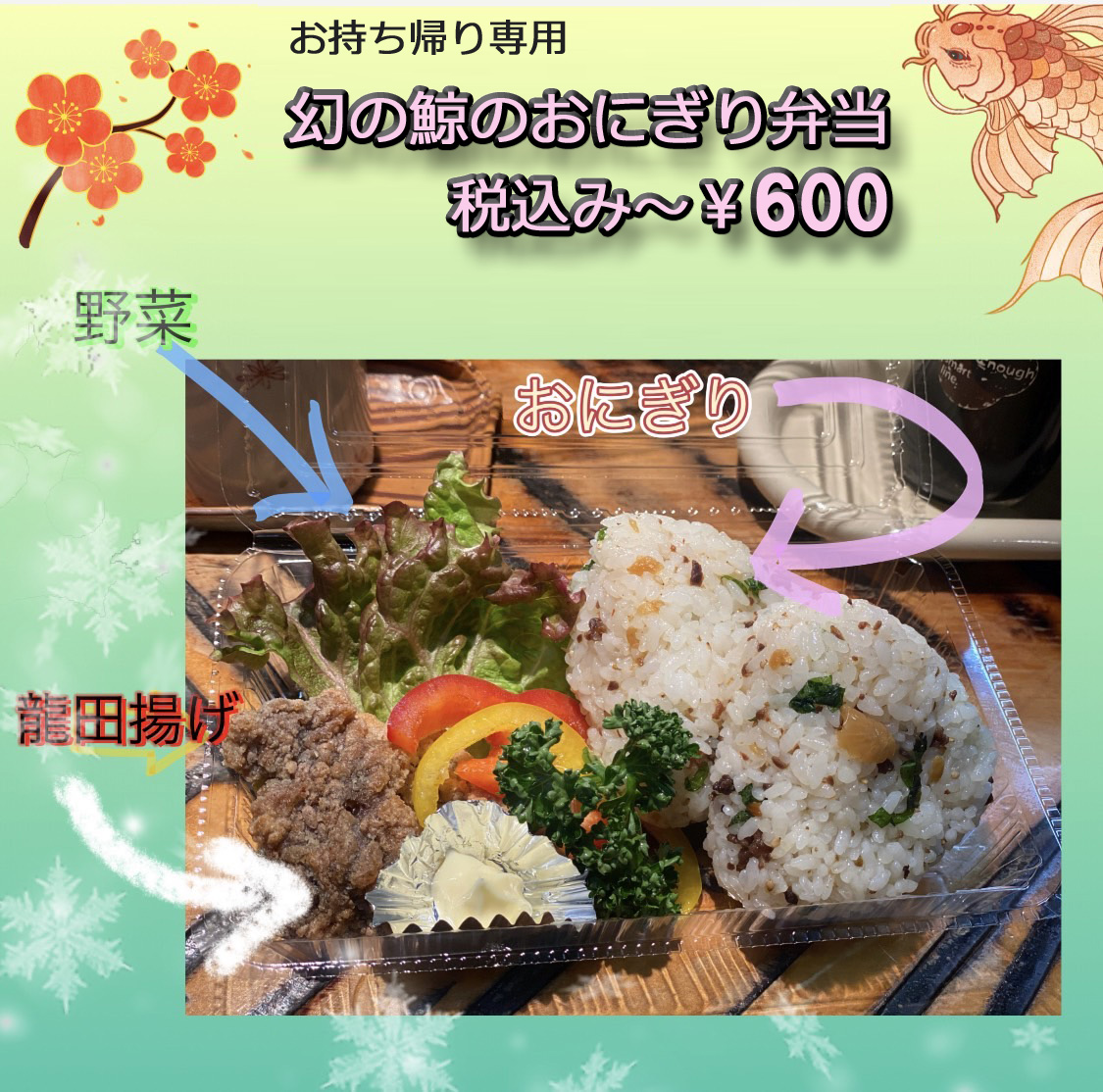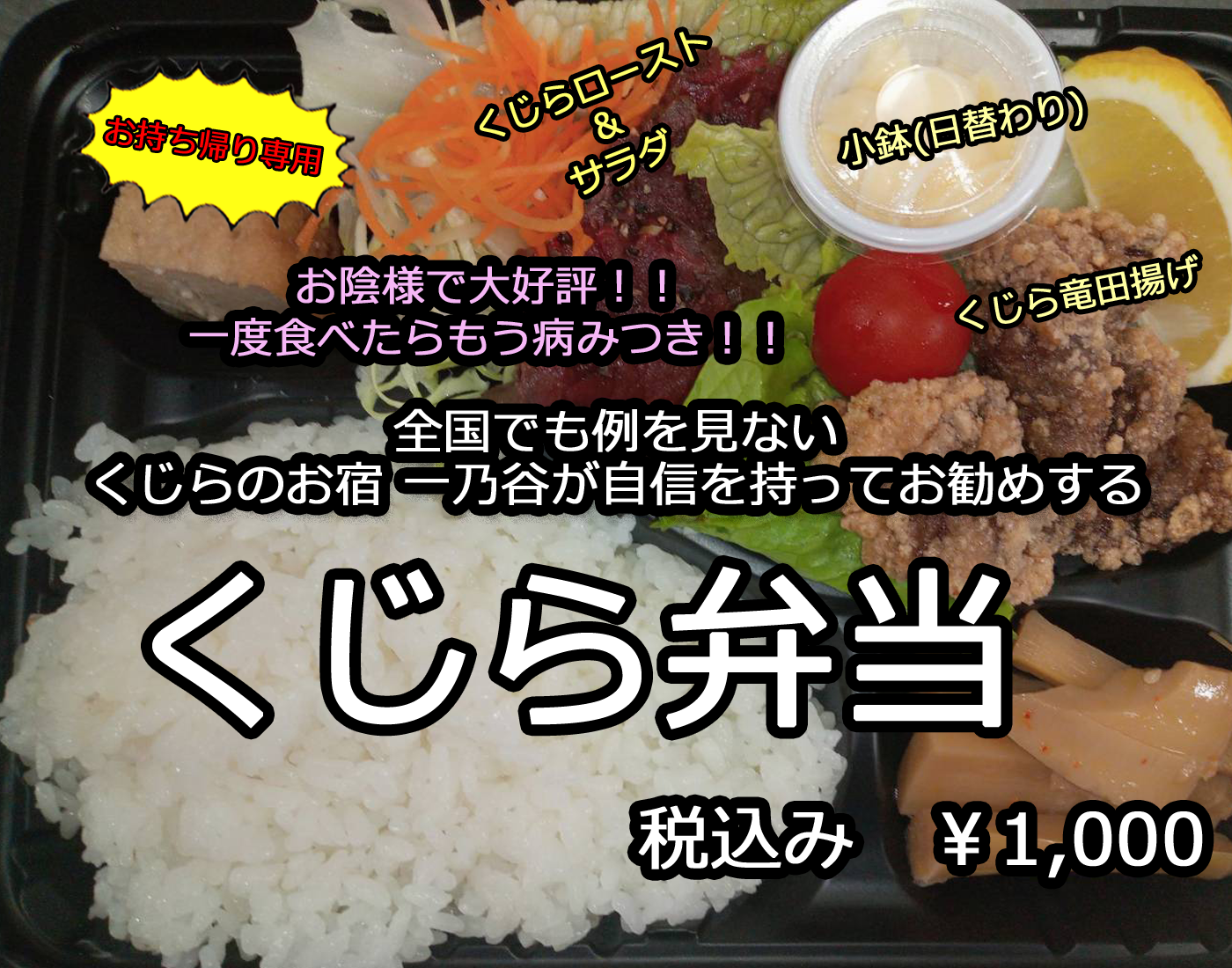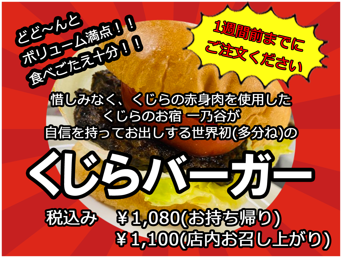 くじらのお宿 一乃谷では、お気軽にどこでも召し上がることのできるテイクアウトメニューをご用意しています。